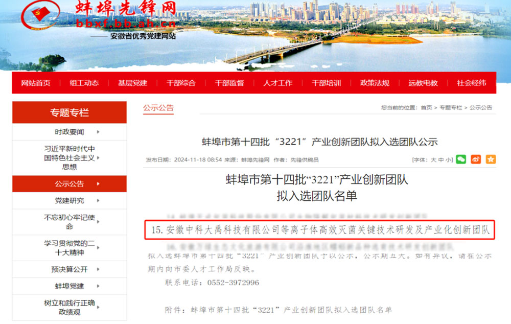 • 中科大禹入選蚌埠市第十四批“3221”產(chǎn)業(yè)創(chuàng)新團(tuán)隊
